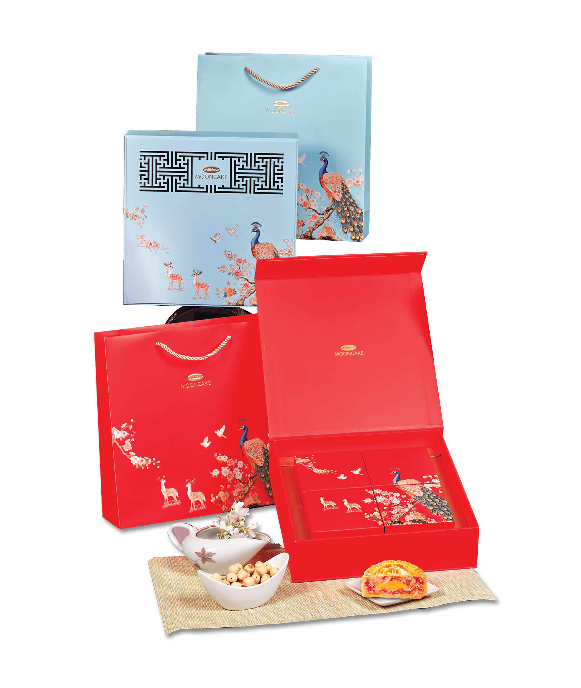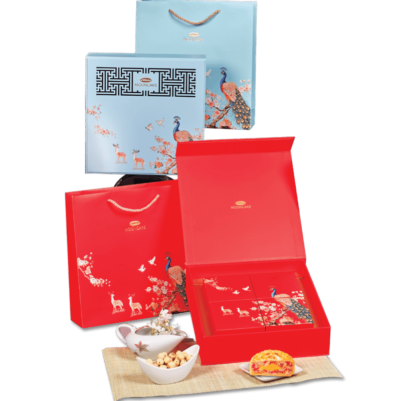 Lấy cảm hứng từ hình ảnh chim công kiêu sa, Bách Nguyệt là sản phẩm mang thông điệp vinh hoa – phồn thịnh – tôn vinh vẻ đẹp Việt. Với thiết kế mang tông xanh ngọc dịu mát hoặc đỏ rực rỡ, hộp bánh gợi lên sự sang trọng mà vẫn gần gũi, phù hợp cho cả biếu tặng và dùng trong gia đình