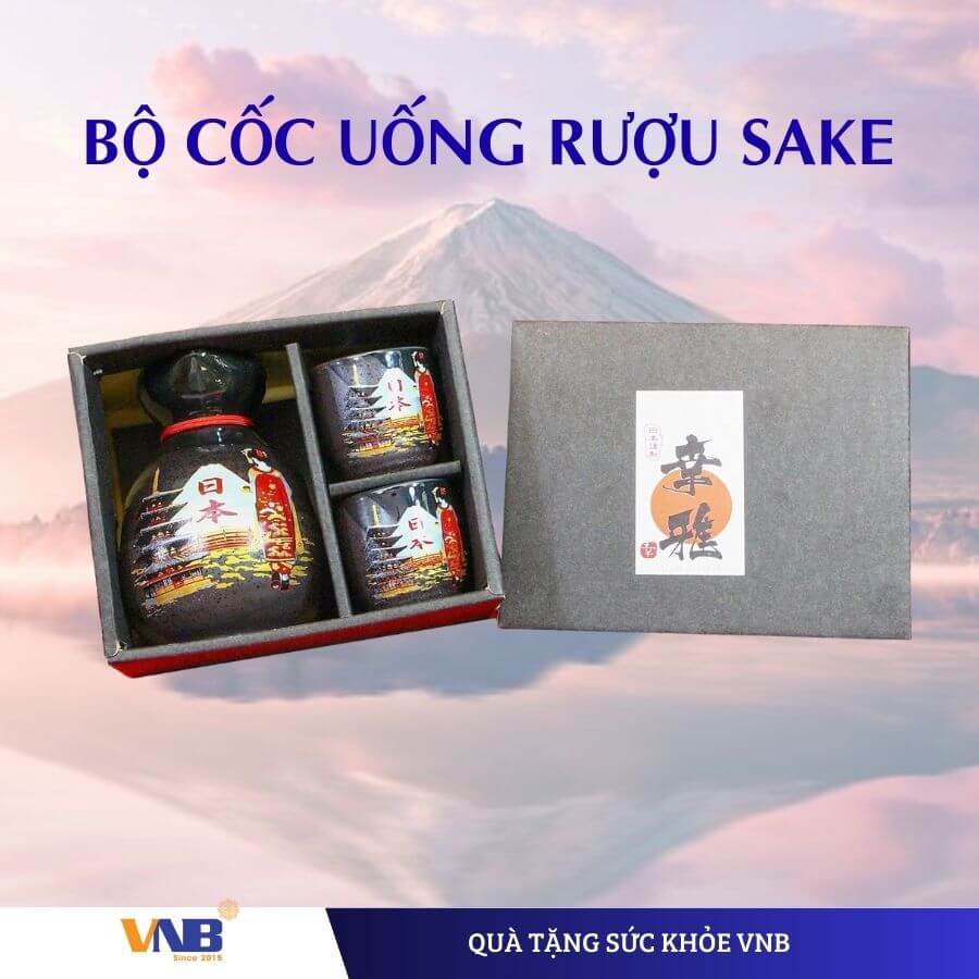🍶 Set lưu niệm Nhật Bản gồm 1 bình rượu + 2 chén sake gốm