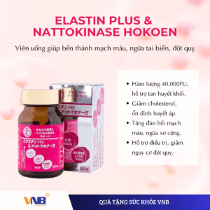 Sản phẩm kết hợp Elastin và enzyme Nattokinase – chiết xuất từ món Natto truyền thống, nổi tiếng với công dụng hỗ trợ sức khỏe tim mạch.