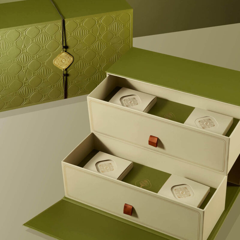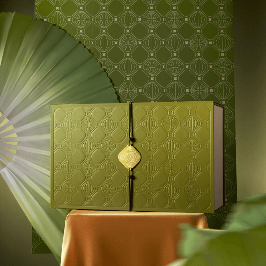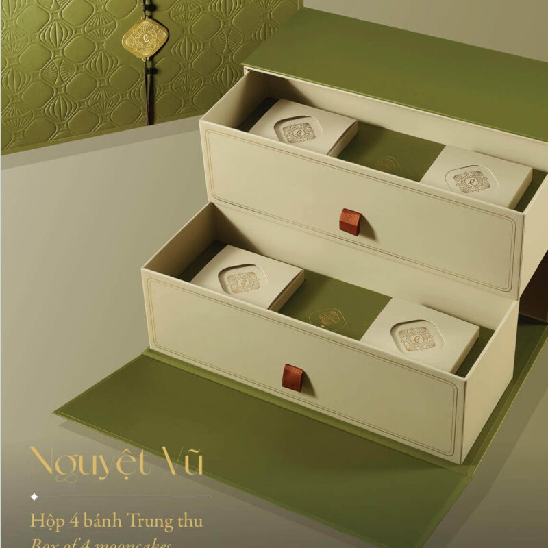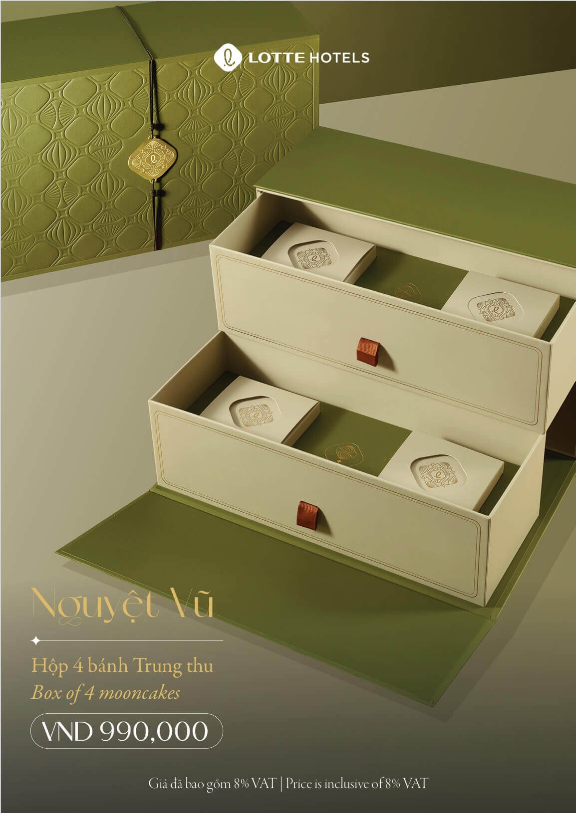 Thiết kế hộp tinh tế được lấy cảm hứng từ ánh đèn lồng đêm trăng và điệu múa quạt uyển chuyển, hoàn thiện nên món quà sang trọng, đậm đà bản sắc mà khách sạn LOTTE Hà Nội trân trọng gửi trao trong mùa đoàn viên năm nay.