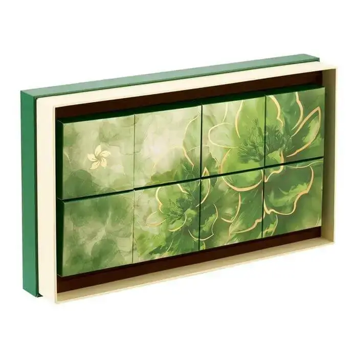 Hộp 8 bánh nướng 80gr: Gồm nhân Thập Cẩm, nhân Sen Trà Xanh, nhân Mơ Tây, nhân Đậu Đỏ, nhân Nam Việt Quất, nhân Hạt Sen Trứng Muối, nhân Mè Đen Óc Chó, nhân Sen Hạt dẻ.
